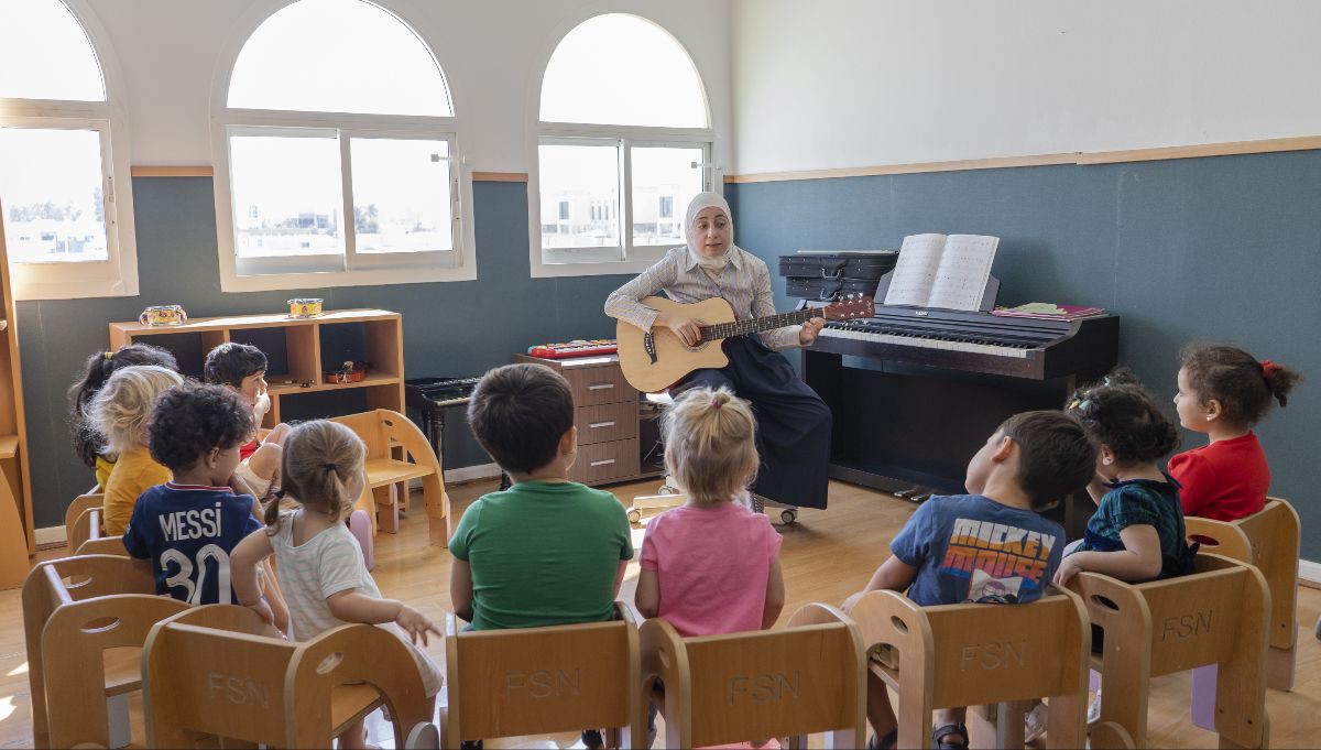 Arabic is mandatory for all and non-Arabic speakers have two formal session while Arabic speakers have five sessions. Arabic songs and music are a regular feature of circle time and music lessons.